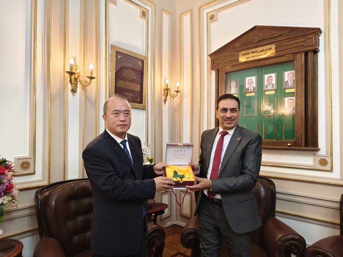 在埃及访问期间,代表团一行会见了中国驻埃及大使馆公使衔参赞卢春生,访问了开罗大学与苏伊士运河大学。王占仁与两校负责人就科研合作、师生互访等达成共识,并与苏伊士运河大学签署了校际合作协议。